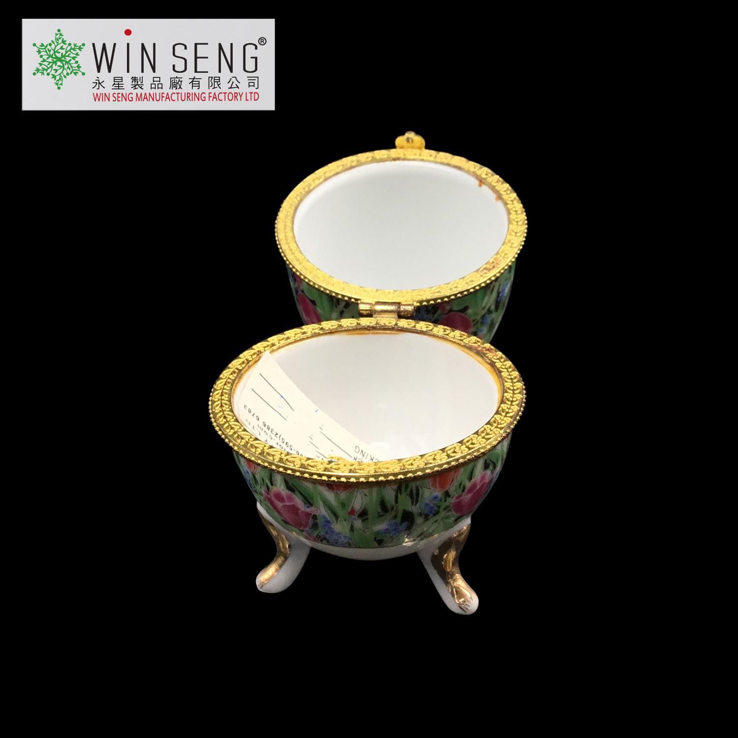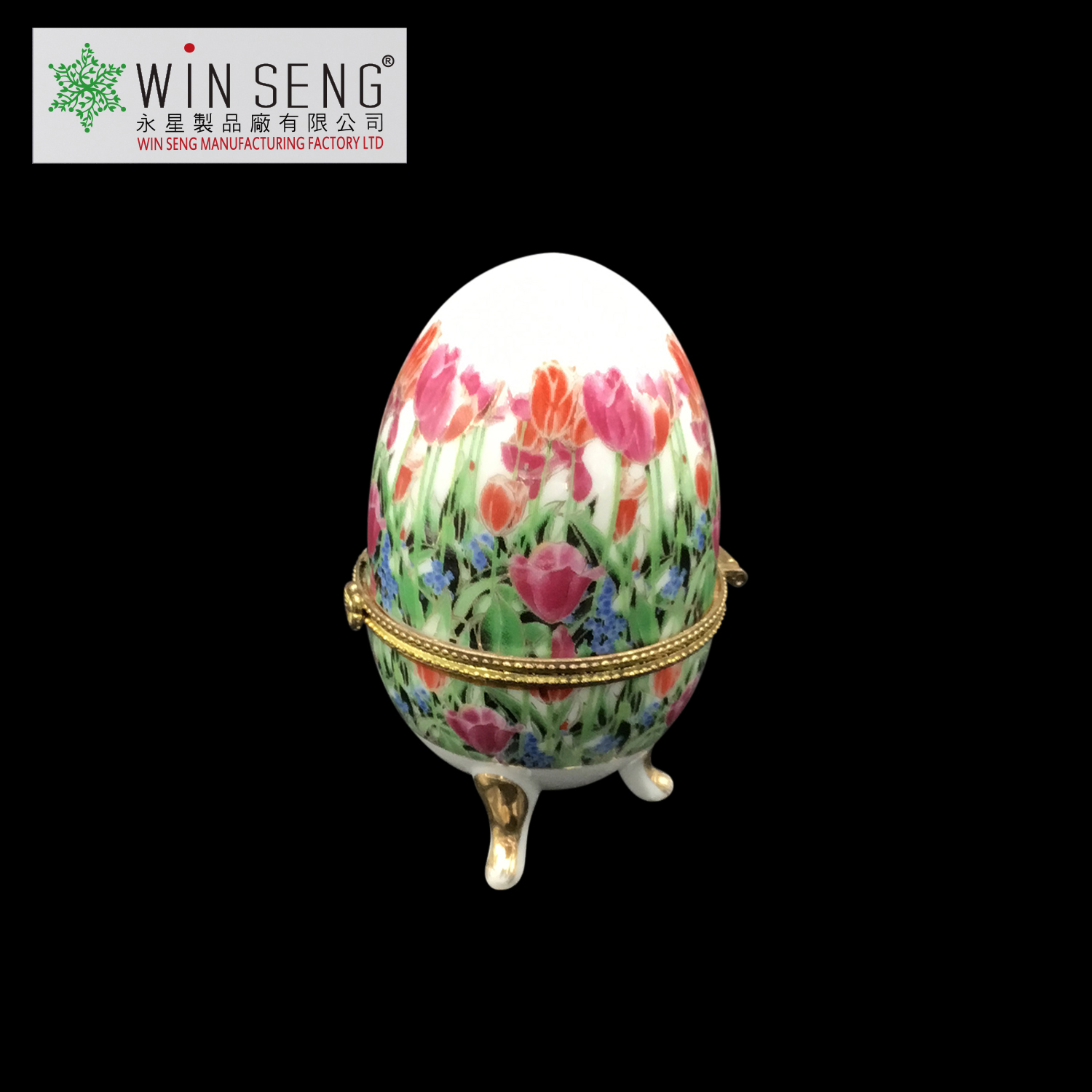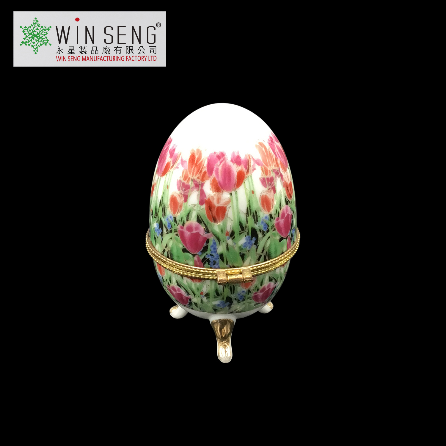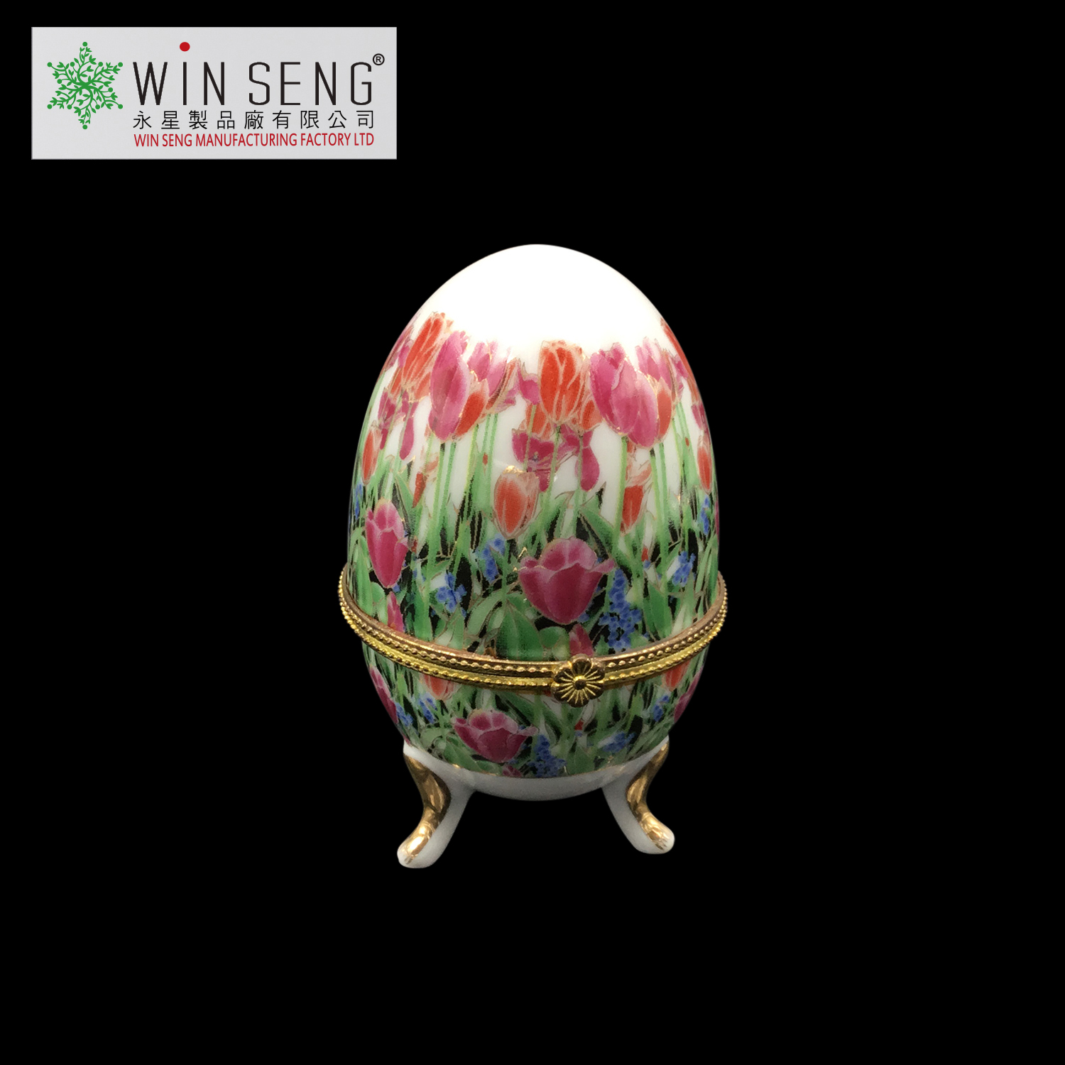 Grace and glamour don’t always spring from glitter and gold. Presented here is an egg-shaped jewelry box overflown with blossoming cup-shaped flowers rising from upright and robust stems in the meadow, so it resembles a picturesque scene of a grassland full of tulips for a bright, elegant and lively look. Set under the delicate florals is a light-colored base with gold-tone edges on its rim and legs for a clean, subtly graceful and luxurious appeal. Elegant, refined, and intricately made, this trinket box promises to lend a charming air to your vanity.