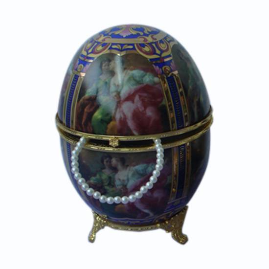 This egg-shaped porcelain jewelry box is finely crafted with sophisticated details on the lid. The well-polished surface with an elegant picture on the box exudes a sense of elegance. The medieval-inspired design protects your jewelry with great style.