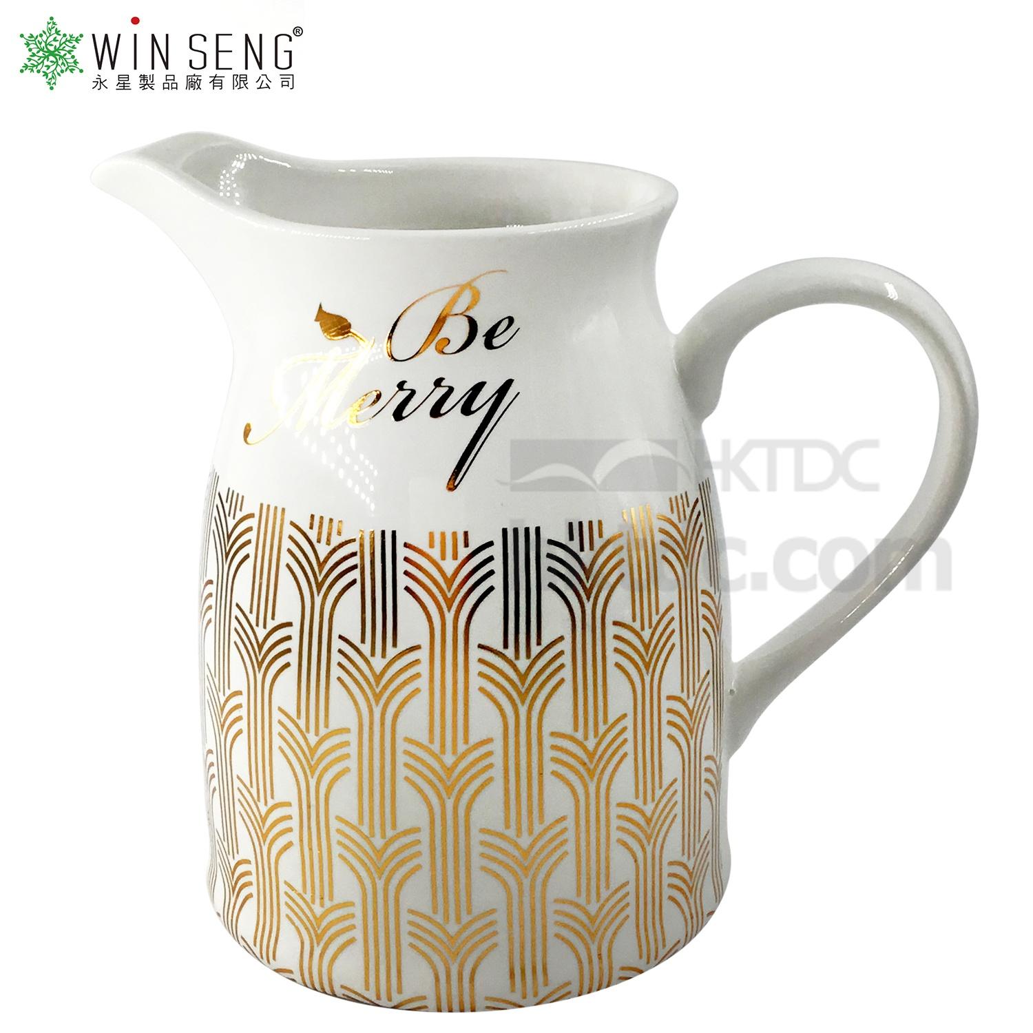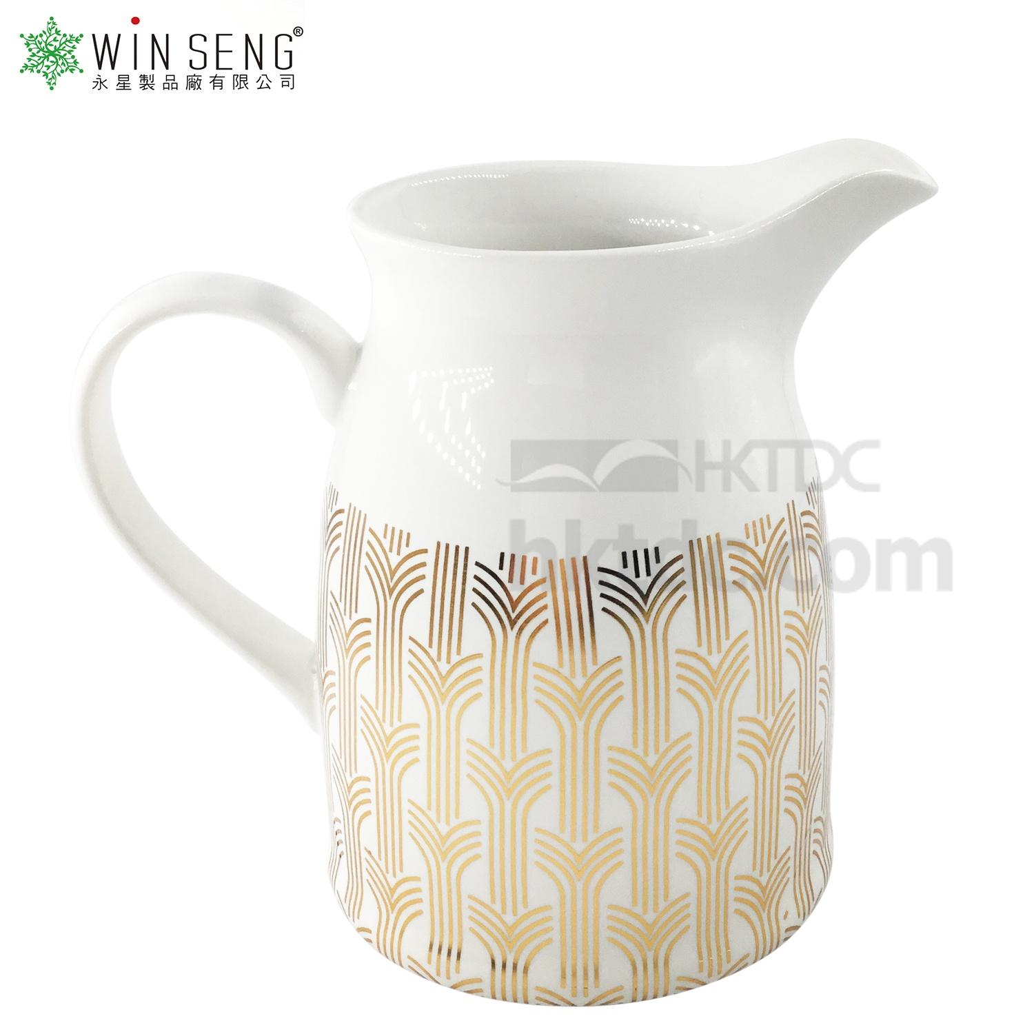 Serve your guests with a cup of cold milk elegantly with this milk pitcher. Standing the test of time with fine ceramics, this large milk jug can hold up to 660ml of milk in total, making it ideal for serving a small group of family and friends. Looking classy and stylish, it is peppered with golden geometric patterns all over its finely polished surface to boast a chic appeal.