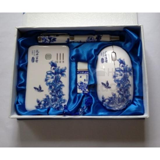 4-piece gift set featuring power bank, mouse, USB and gel pen.