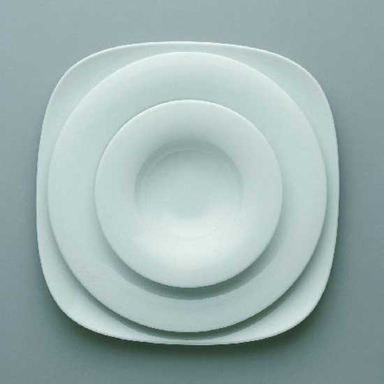 The photographed tableware set is well made of porcelain. This porcelain dinnerware set comes with three plates with assorted shapes. This porcelain tableware set is ideal for everyday use.
