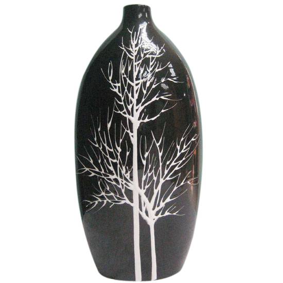This vase is made in porcelain with beautiful patterns. It is designed in a streamline shape with white tree pattern in natural and elegant style. It serves as a vase and also a decoration for home or shops.