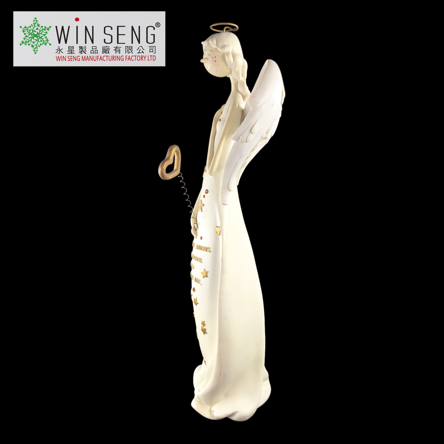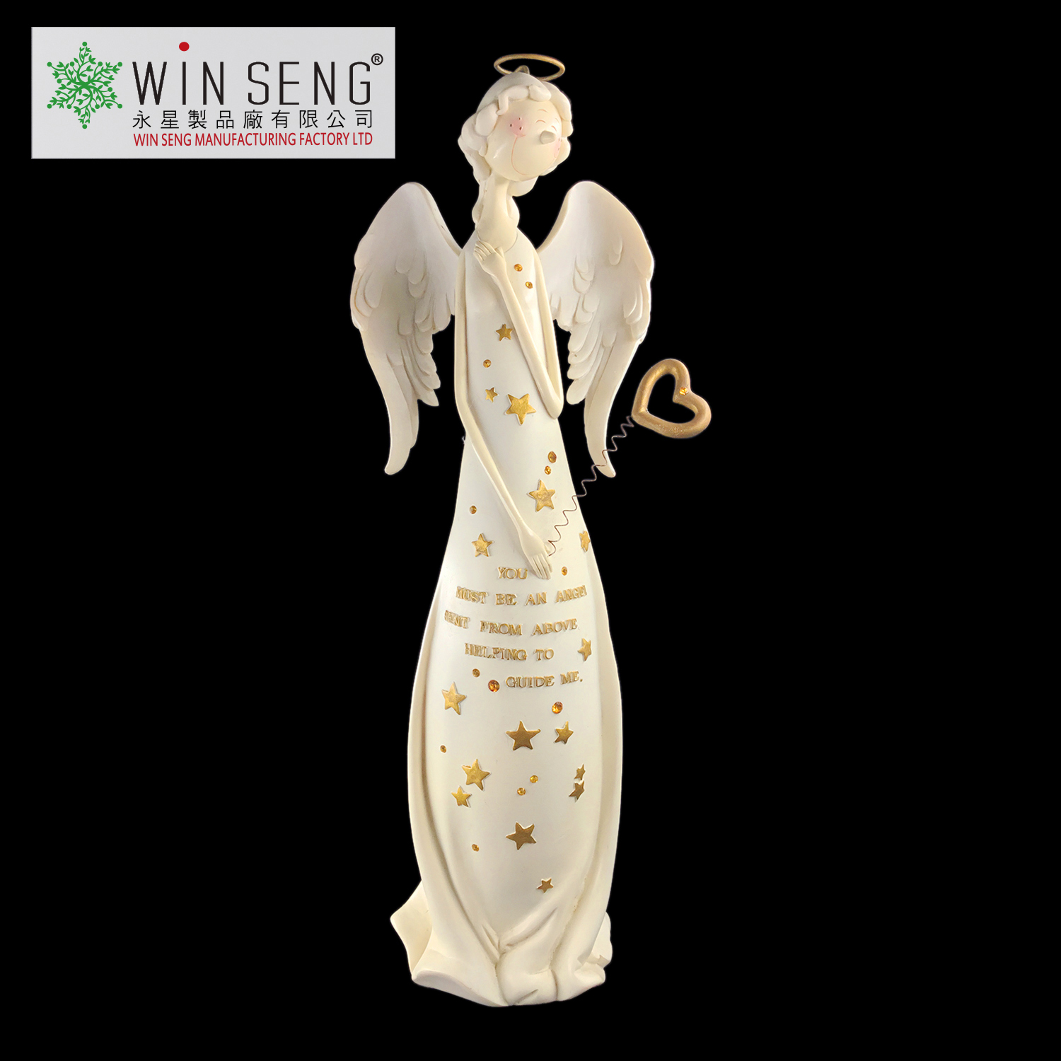 Item Name: Porcelain white angel with golden star holding a golden heart decoration
