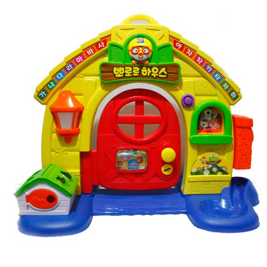 Pororo is a very curious impish little penguin. He lives together with his friends including the good-natured polar bear Poby, smug nosy red fox Eddy, shy and timid little beaver Loopy, mischievous baby dinosaur Crong, cheerful penguin girl Petty and happy humming bird, Harry. Pororo is a popular animation character in Korea. Pictured is a play house set featuring Pororo and friends to delight your kids.