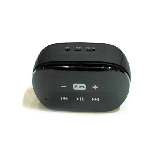This is a portable speaker that is compatible with all Bluetooth devices. It boasts a fashionable and stylish design in allover black with a highly glossy finish. The speaker is also professionally engineered to offer high-quality sound effects.