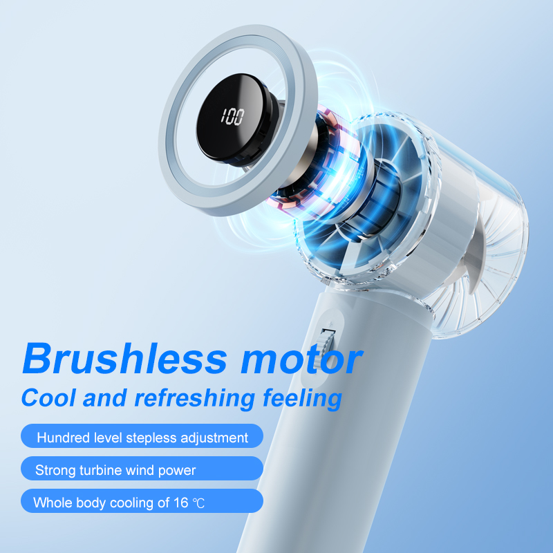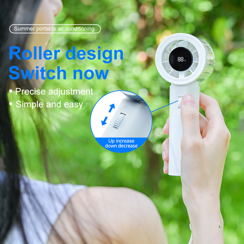 Portable Brushless Motor Pocket Handheld Fan with KC Battery Rechargeable Digital Display Cooling Roller Design Button