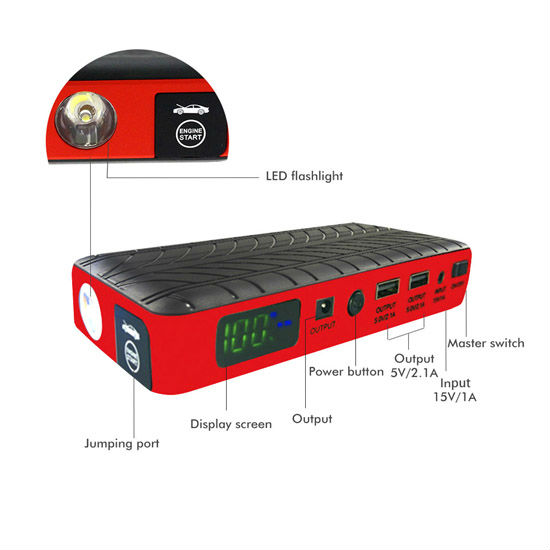 Support 12V car emergency jump start with flash light for torch and SOS function