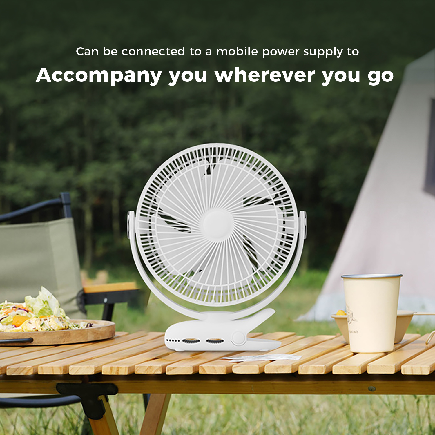 * 7-inch portable Fan with 5-blades, wind speed >5M/S