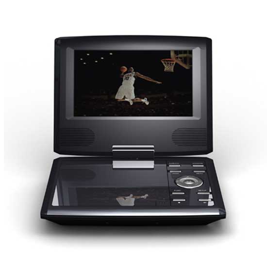 Displayed here is a DVD player with a Li-ion rechargeable battery for better performance. It comes with a brilliant screen for vivid image display. This DVD player is suitable for on-the-go use.
