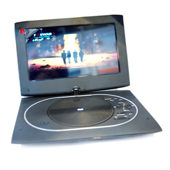 The highlighted DVD player features a foldable design. It comes with a colorful 9” 16:9 TFT LCD screen for brilliant image display. This portable DVD player is great for travel use.