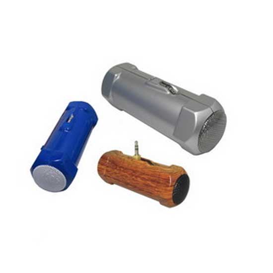 Featured is a portable MP3 speaker in a mini size. It is fully compatible with a wide range of music players. The speaker can be powered with AA batteries or a USB port. Enjoy your favorite tunes with this bar-shaped speaker.