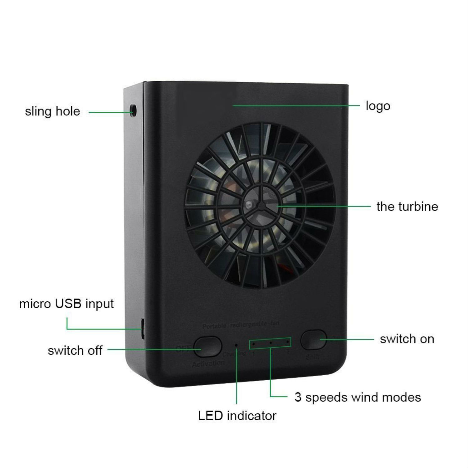 - (Note)-Before Use, please install the 18650 battery (included) on the fan, and then plug the USB charging cable (included) to give the fan full charge. It can prolong the fan's life.