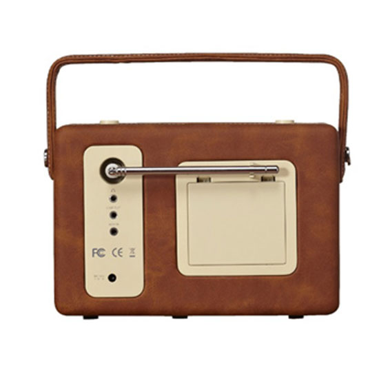 This is a portable radio designed in a compact size with a durable handle for easy carrying. It features a leather cover in brown for a classical touch. This radio is finely engineered to ensure excellent performance.