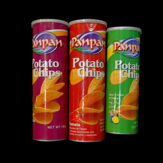 Shown here is a series of potato chips. Coming with a variety of flavors, this snack is a favorite of kids and adults. Packed in tall cans, this potato chips series is great for picnics, movie nights and parties.