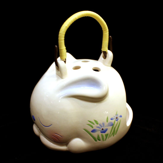 This is a pottery decoration designed as an adorable rabbit. The body is nicely colored and decorated with flower paintings. The surface comes with a smooth touch for extra beauty.