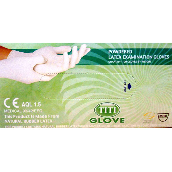 This is a pair of powered latex examination gloves with a professional design. It is finely engineered for reliable and stable performance. This pair of examination gloves is made of natural rubber latex for durability.