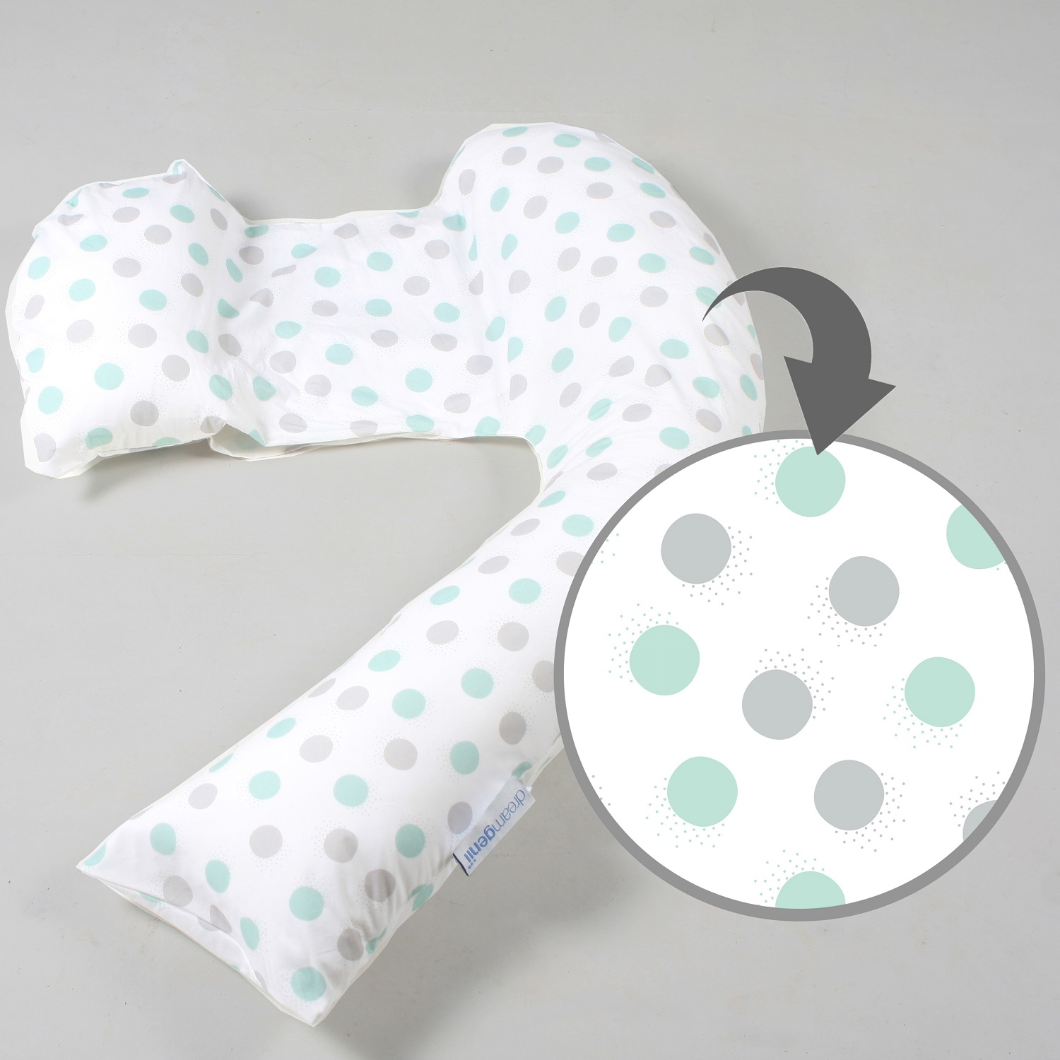 Patented design pregnancy pillow in various colors. Pillow cover detachable and washable.