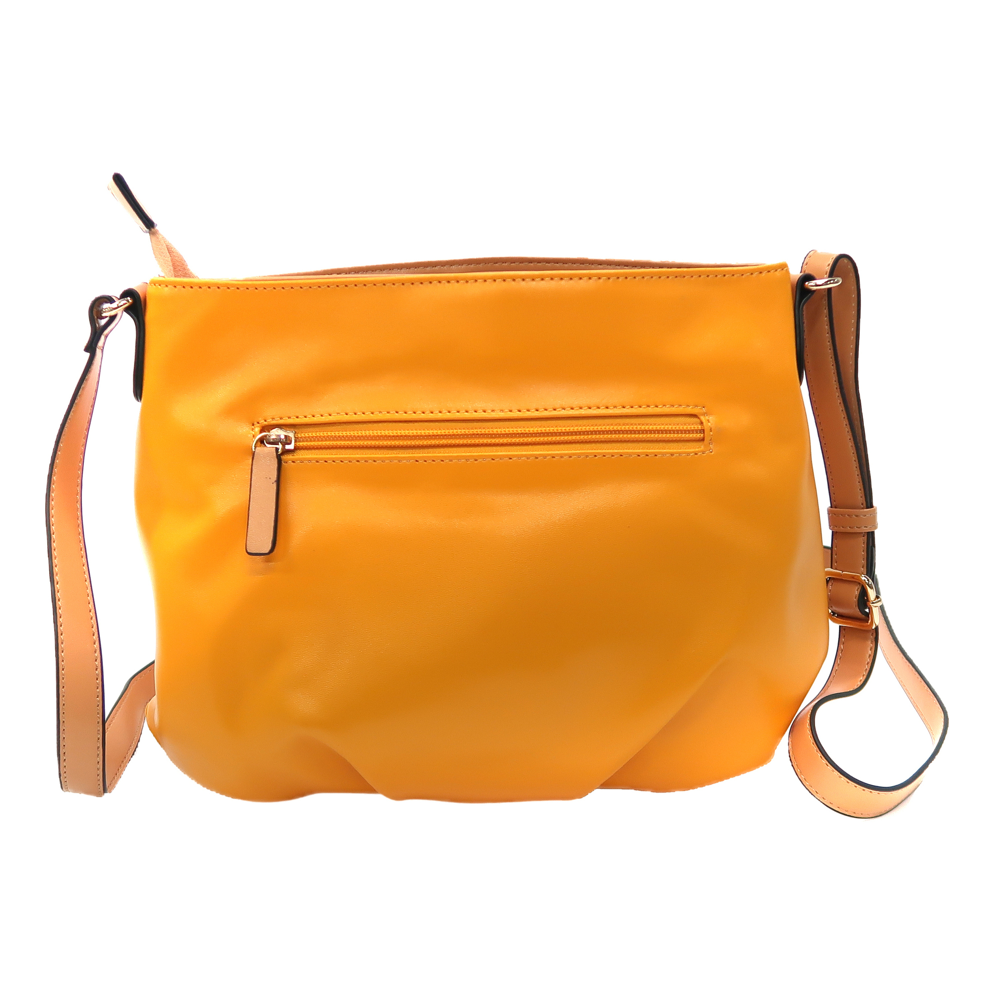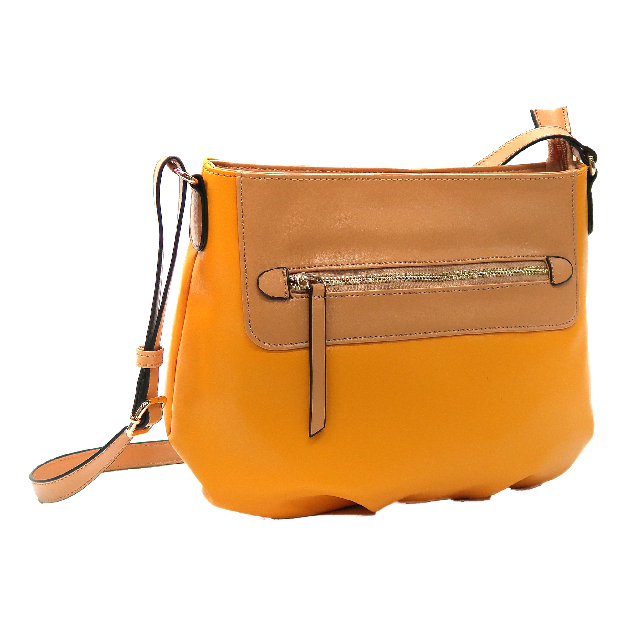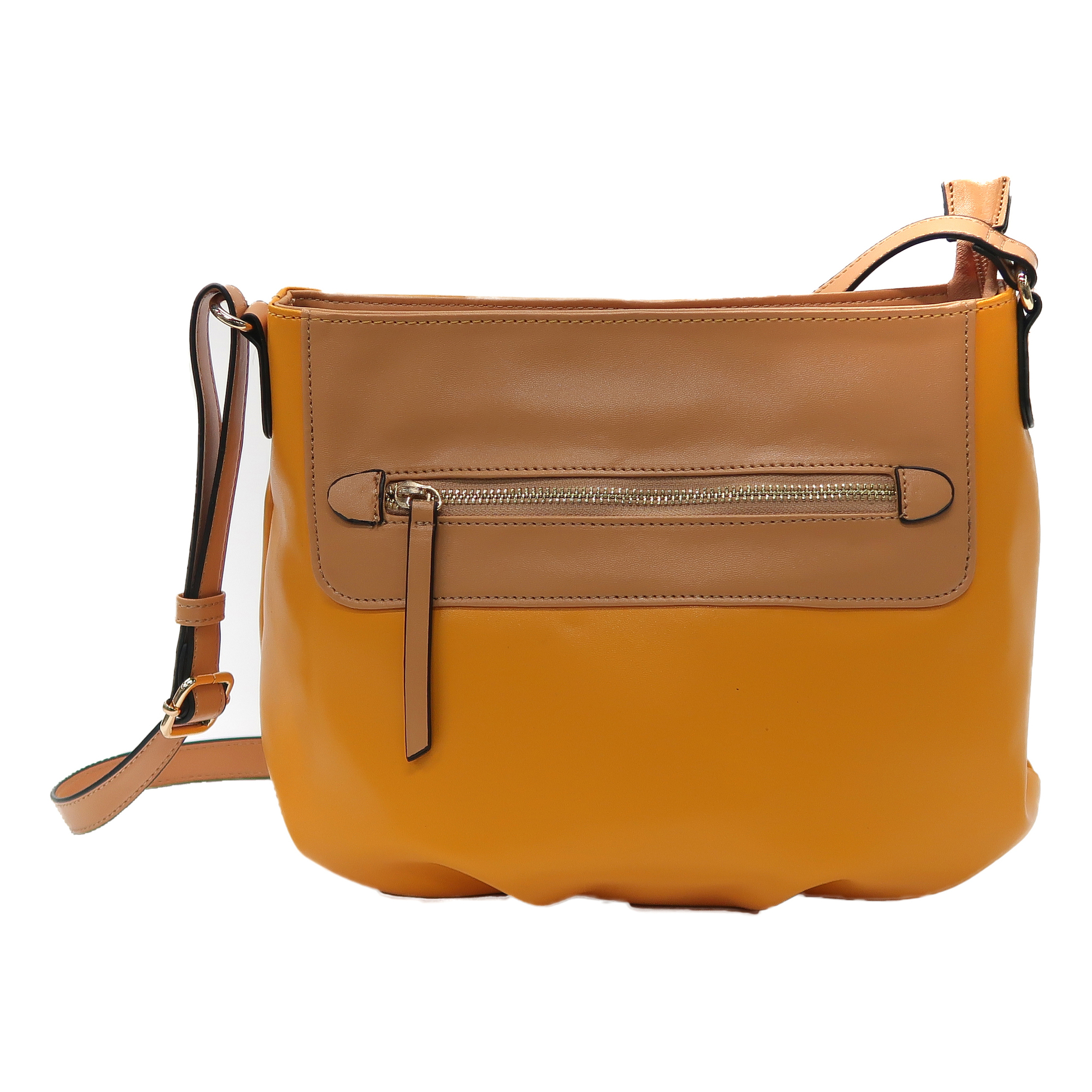 • Adjustable shoulder strap, metal zip on front, 1 interior zip pocket and 2 interior slip pockets