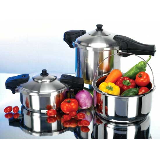 Featured is a set of pressure cookers that comes in sturdy stainless steel construction. The pressure cookers help to save cooking time effectively. With the streamlined design and high-functioning performance, the pressure cookers are simply your best helpers in the kitchen.