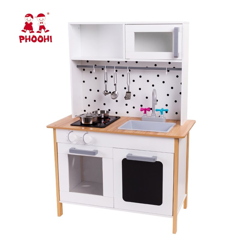 Pretend Play Children White Cooking Set Wooden Kids Kitchen Toy with Accessories