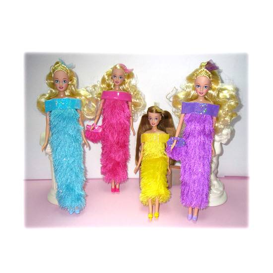 This is a princess doll that is 11.5 inches tall. It has long curly hair and can come as a blonde or brunette. The doll comes with a hair accessory along with shoes and a furry gown that are avaliable in a range of vibrant colors. A feature of the doll is that it is bendable at the joints.