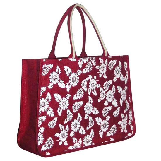 This attractive handbag is printed with white floral patterns on the red background. The quality handbag boasts a high loading capacity and sturdy construction. The two rolled handles complete the look of this stylish handbag.
