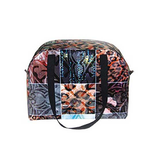 This printed handbag features a modern design with assorted graphics. It comes with a pair of long black straps for easy carrying. This eye-catching bag is also a durable and user-friendly choice for you.