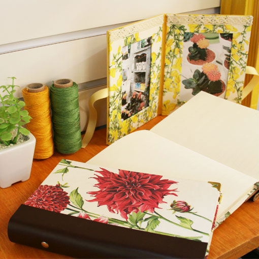 As shown is a series of notebooks boasting beautiful hardcovers. The covers feature floral prints or artistic patterns and are matched with a leather ridge. The notebooks make elegant choice for diary, notes and so on.