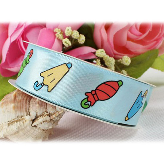 This reel of ribbon boasts a fashionable and cute design. It features assorted umbrella prints in different colors. There are various patterns available for you to choose from.