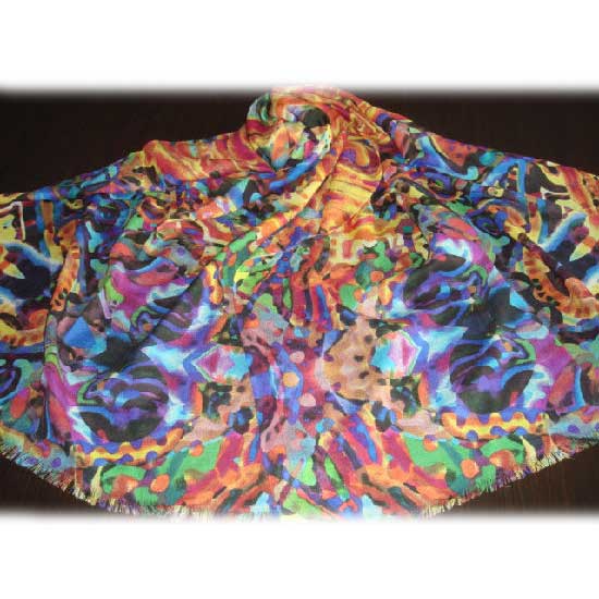 This printed shawl features decorative, multi-color patterns that look abstract and modern. It is a great addition to plain and simple garments. This beautiful shawl can be tied in multiple ways according to the preference of users.