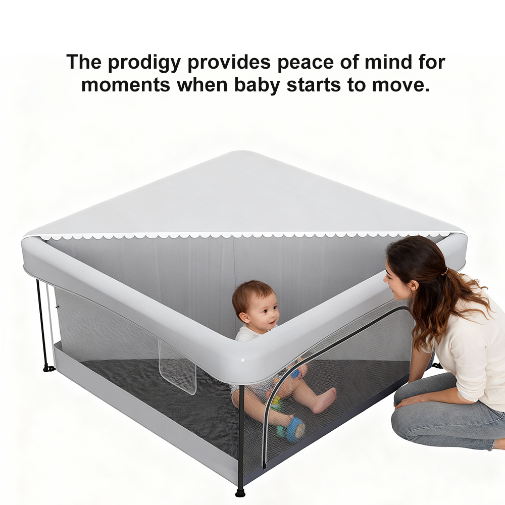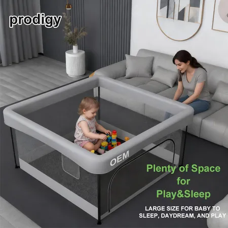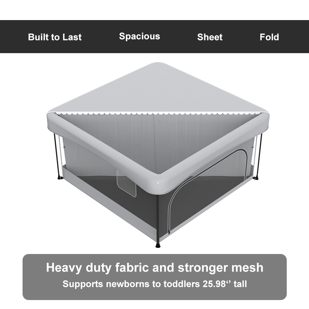 Customizable baby play fences, toddlers' play pens and play beds, children's activity fences and playgrounds with anti-slip bases and soft breathable mesh fabric (gray, pink, green),Easy to assemble and clean,Stable and durable material design.