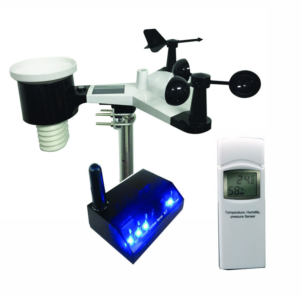 Wireless Y type sensor measures wind speed, wind direction, rainfall, UV and solar radiation Wireless indoor thermo-hygrometer-barometer sensor Publish real time data to Wunderground.com every 14 seconds. No fees.