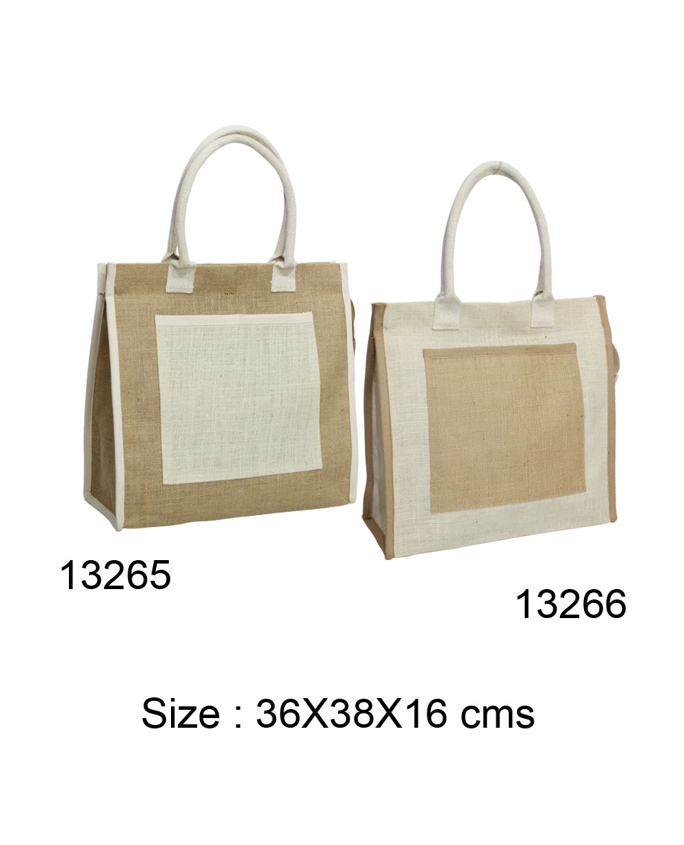 Natural Laminated Jute & Off white Laminated Jute with 45 CMS Rolled Tape handle