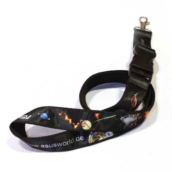 The lanyard features an extra thick band and colorful letters on the surface. The lanyard is completed with a detachable buckle and a clip to hold your ID or keys. Complete your collection with an Asus lanyard.
