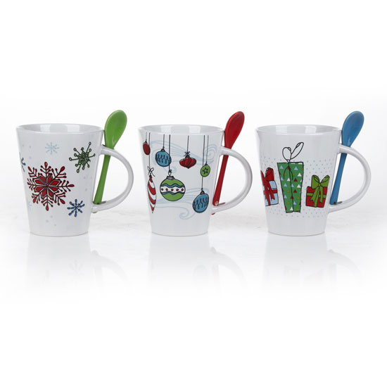 This 14oz mug comes with a white finish. The festive print adds style and fun to the whole piece. Serve a cup of hot chocolate or coffee with this delightful mug.