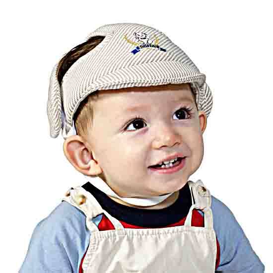 This cushioned cap protects the head of the baby from hurting by impact. The cap is comfortable to wear as it is made of 100% cotton fabric. Its striped patterns make it also lovely on babies.