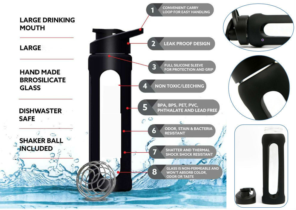 Protein Shaker Sports Glass Water Bottles With Silicone Sleeve