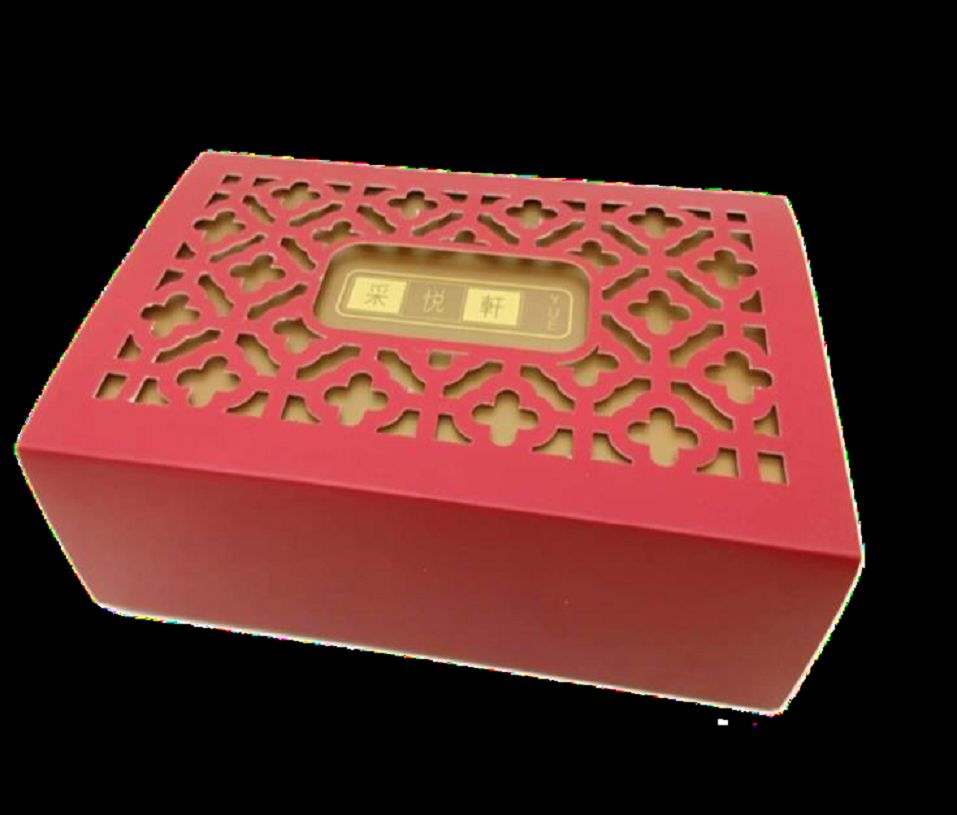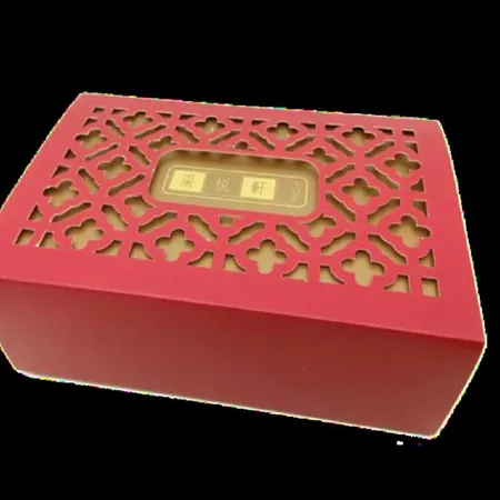 This red box is intricately carved with patterns and has a gold label embedded within. It is elegant and classic, resembling a delicate and exquisite box that holds poetry and refinement, fully embodying the charm of Chinese style.