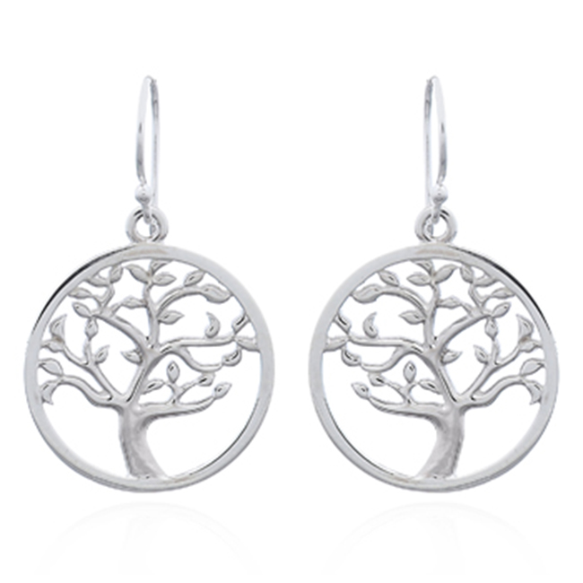 Puffy Leaf In Sterling 925 Tree Of Life Dangle Earrings