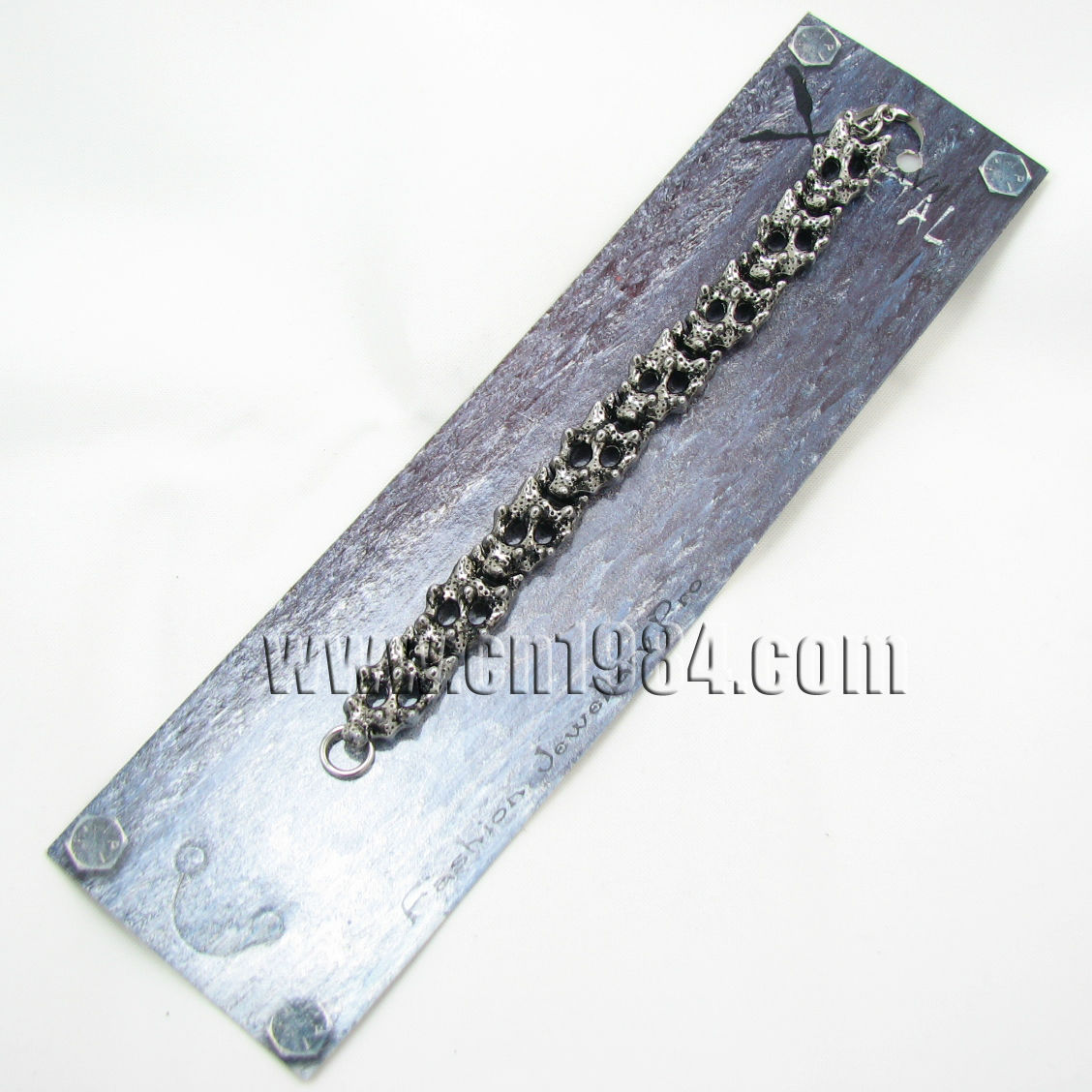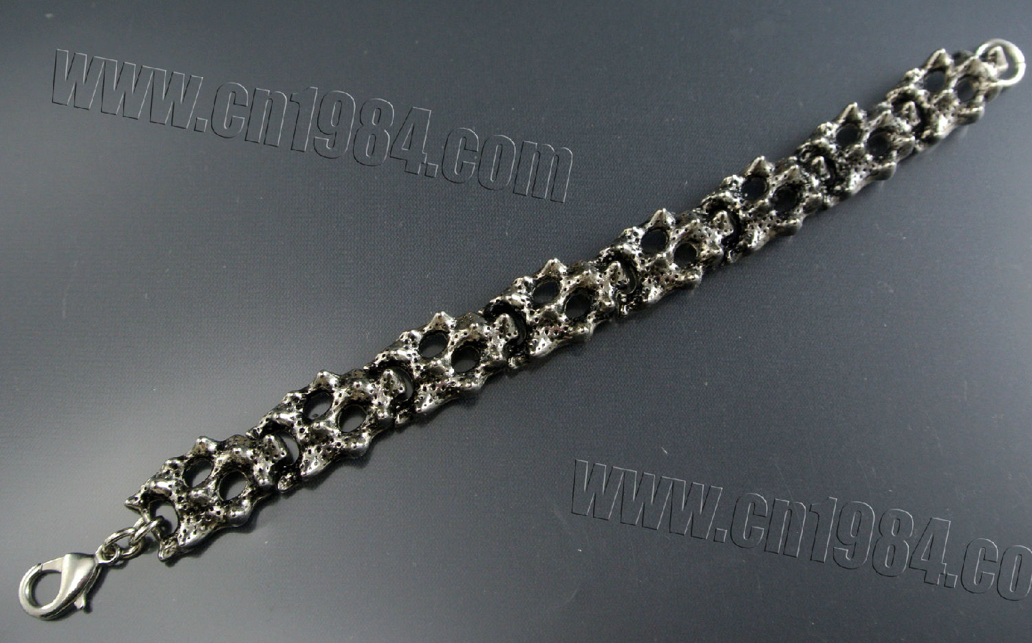 This die cast zinc alloy bracelet is inspired by punk style. It features a molten design with antique nickel free color plating. The bracelet can be easily fastening with the lobster clasp on the ends.
