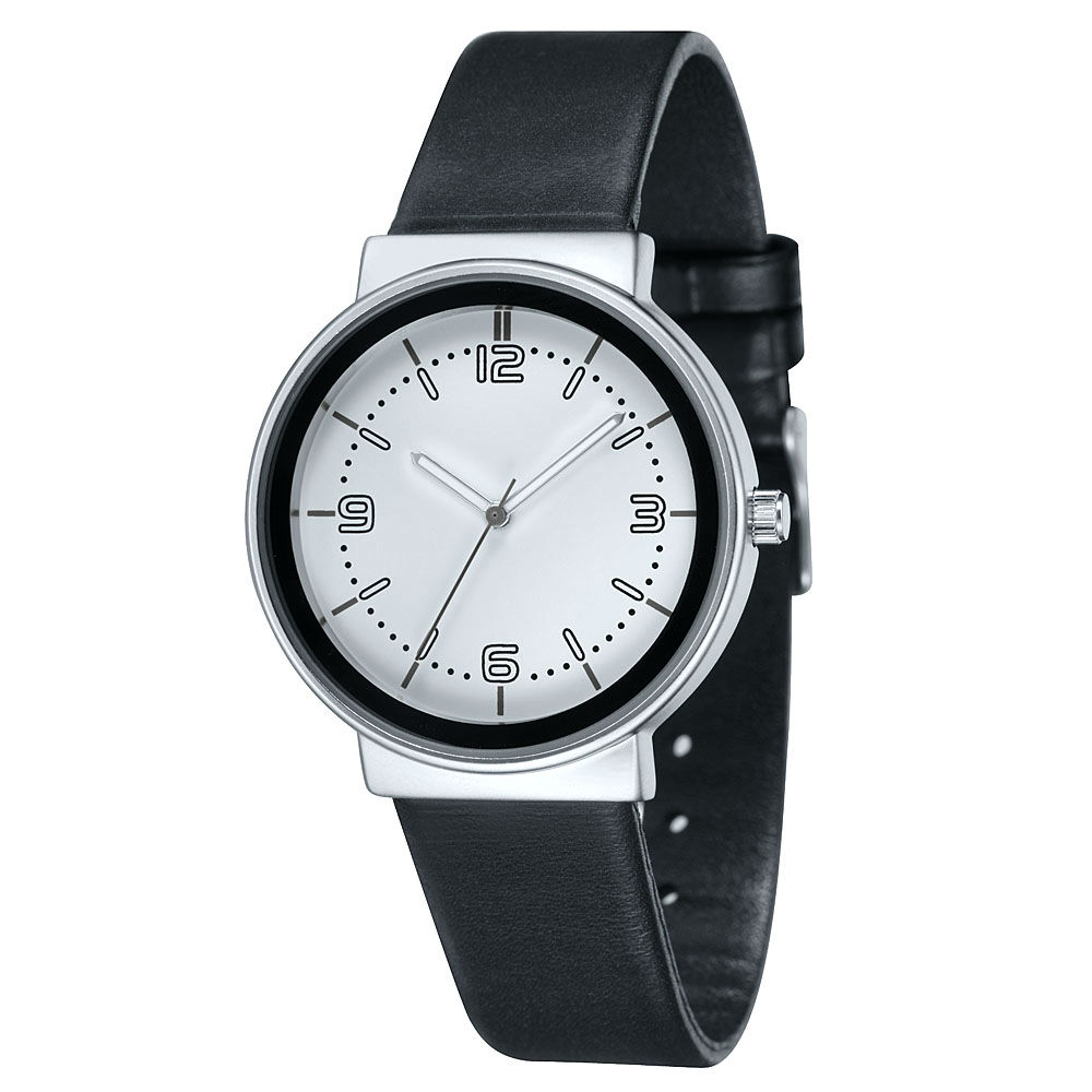 Alloy case, IPS plating, printing dial with printing index, genuine leather strap with smooth pattern, 3 ATM, 3 hands japan parts movt