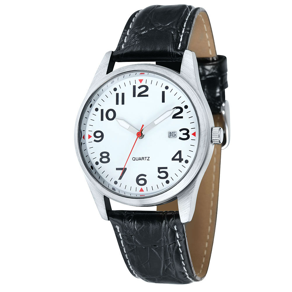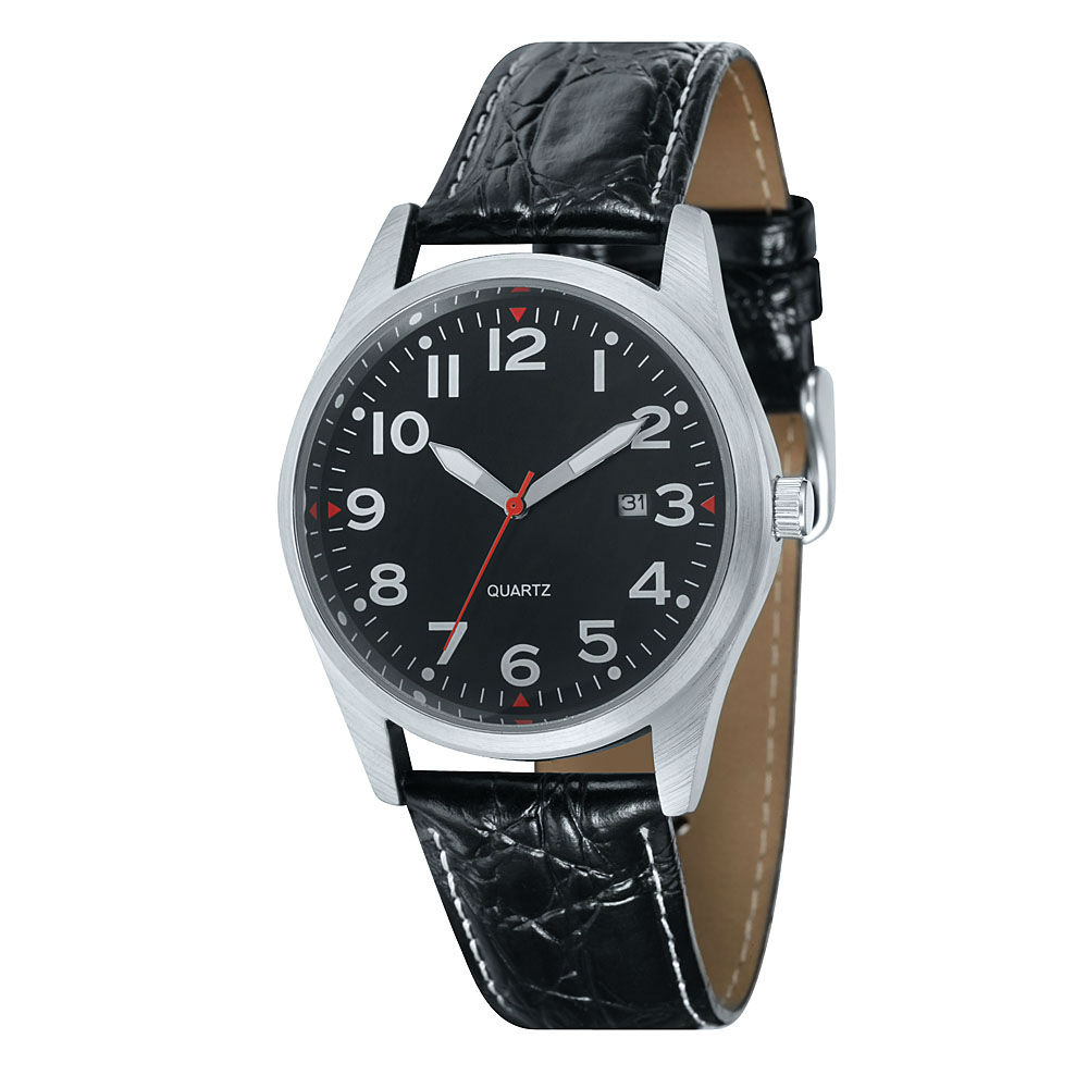 Alloy case ,IPS plating, printing dial with printing index, genuine leather strap with croco pattern, 3 ATM, 3 hands date japan movt