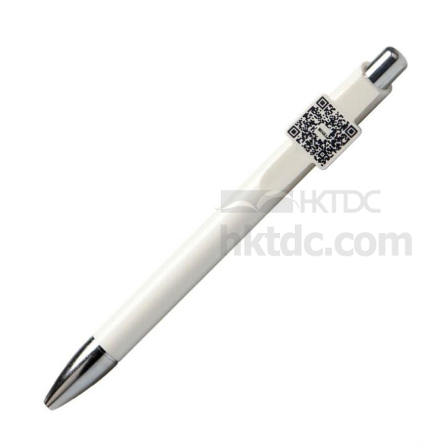 - QR Pen retractable plastic and metal ball pen with a special clip designed for QR (Quick Response) codes.