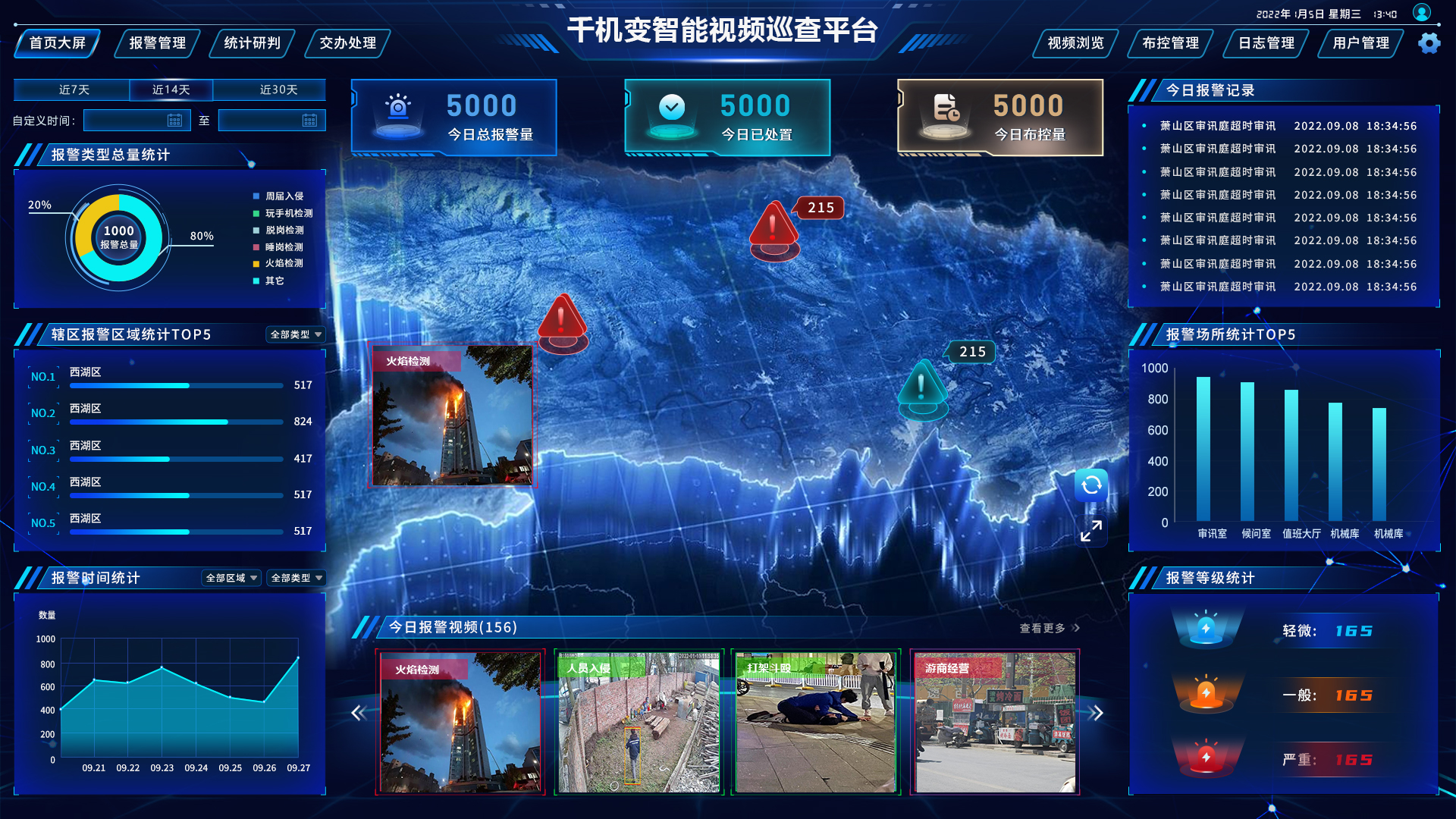 千记编智能视频巡检平台是一个综合行为分析应用平台,利用 AI 视觉分析技术,辅助城市治理、巡逻管控、岗位监管等场景。支持城市外观的路边摊检测和小型广告检测,办公室的下班检测、手机播放检测和睡眠检测,重点区域的入侵检测和火焰检测,以及预警报告和处置等应用。
