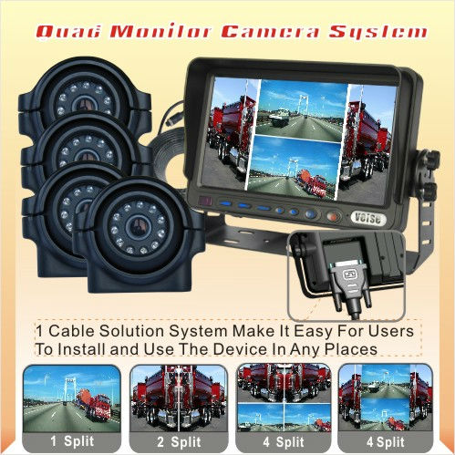 - 7" digital screen TFT LCD color quad monitor with removable sun visor.