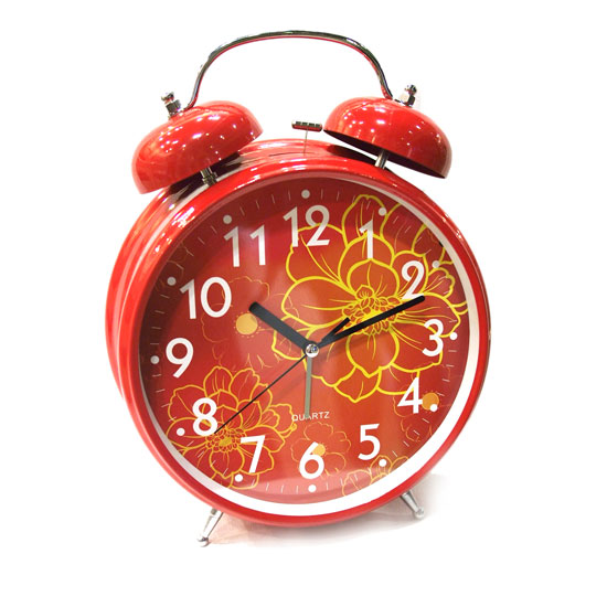 This flaming red quartz alarm clock is designed with fancy floral patterns on the dial. The bell alarm effectively wakes the user every morning. This practical and nice looking clock is an ideal choice for you.