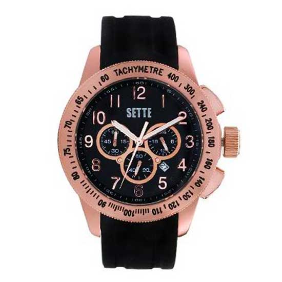 The quartz analog watch uses the Japan Miyota movement to guarantee superior performance. The round bezel is marked with a tachymeter scale for added utility. With three sub-dials and a date display window, management your time well with this quartz analog watch.