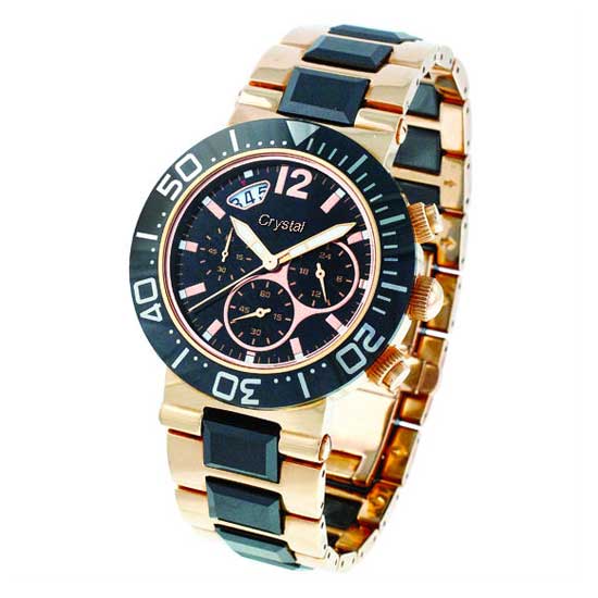 The outlined quartz analog watch flaunts an opulent accent. It features an IP rose-gold and ceramic watch bands with an IP black dial. It is accented with a ceramic bezel for added style.