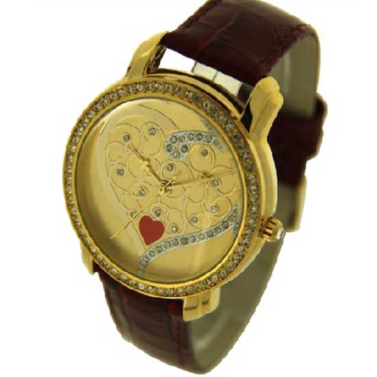 The quartz analog watch is well designed with a golden watch case for an opulent touch. The embossed heart pattern adds a refined touch to the wristwatch. This delicate quartz analog watch is easy to mix and match.