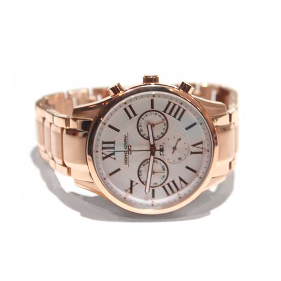 This is a quartz analog watch that grabs people's attention with its deluxe and dainty appearance. The round case and sophisticated bracelet are made of quality stainless steel for added durability. The roman numerals add a classic and elegant to this watch.